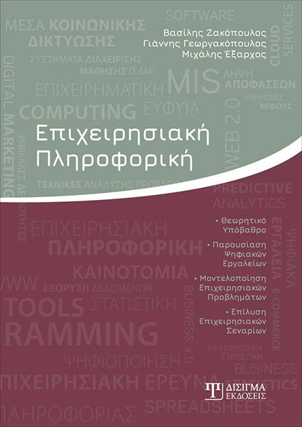 ISBN: 978-618-202-116-3 Συγγραφέας: ΖΑΚΟΠΟΥΛΟΣ ΒΑΣΙΛΗΣ, ΓΕΩΡΓΑΚΟΠΟΥΛΟΣ ΓΙΑΝΝΗΣ, ΕΞΑΡΧΟΣ ΜΙΧΑΗΛ Εκδοτικός οίκος: ΔΙΣΙΓΜΑ Σελίδες: 220 Διαστάσεις: 17Χ24 Ημερομηνία Έκδοσης: Ιούλιος 2022 Το βιβλίο αυτό προσδιορίζει το πεδίο της Επιχειρησιακής Πληροφορικής μέσω των συναφών επιστημών που περιλαμβάνει. Ως βασικό του σκοπό έχει να καλύψει όλες τις αναδυόμενες παιδαγωγικές ανάγκες των καθηγητών και των φοιτητών τους σε σχέση με τη διδασκαλία του γνωστικού αντικειμένου της Επιχειρησιακής Πληροφορικής στην τριτοβάθμια εκπαίδευση, τόσο σε προπτυχιακό όσο και σε μεταπτυχιακό επίπεδο. Το βιβλίο αποτελεί ένα πλήρες εργαλείο στα χέρια των διδασκόντων, καθώς τους καθοδηγεί βήμα βήμα ως προς τον παιδαγωγικό σχεδιασμό και την οργάνωση του συγκεκριμένου μαθήματος, αλλά και ένα σημαντικό σύγγραμμα για τους φοιτητές που θα τους υποστηρίξει ολοκληρωμένα στη μελέτη τους. Πιο συγκεκριμένα, γίνεται ανάλυση του σημαντικού ζητήματος της επίλυσης των επιχειρησιακών σεναρίων. Παράλληλα, αναδεικνύεται πρωτίστως η ανάγκη καλλιέργειας ψηφιακών δεξιοτήτων και παρουσιάζονται σημαντικά ψηφιακά εργαλεία που μπορούν να βοηθήσουν πρακτικά στην επίλυση απλών και σύνθετων επιχειρησιακών σεναρίων, αναλύοντας το δυναμικό εργαλείο Microsoft Excel. Επιπροσθέτως, στο βιβλίο τονίζεται ότι η Επιχειρησιακή Πληροφορική αποτελεί αρωγό στην προσπάθεια που καταβάλλουν οι επιχειρήσεις να οδηγηθούν σε κατάλληλο ψηφιακό μετασχηματισμό, που θα τις οδηγήσει σε ανάπτυξη και καινοτομία. Για τον σκοπό αυτό, παρουσιάζονται πρότυπα Προγράμματα Εκπαίδευσης πάνω στην Επιχειρησιακή Πληροφορική και πιο συγκεκριμένα στην ανάπτυξη ψηφιακών δεξιοτήτων. Ελπίζουμε ότι ο αναγνώστης θα εκτιμήσει την παραπάνω διάσταση της Επιχειρησιακής Πληροφορικής και θα υποκινηθεί να ασχοληθεί περισσότερο με αυτό τον σημαντικό επιστημονικό κλάδο.