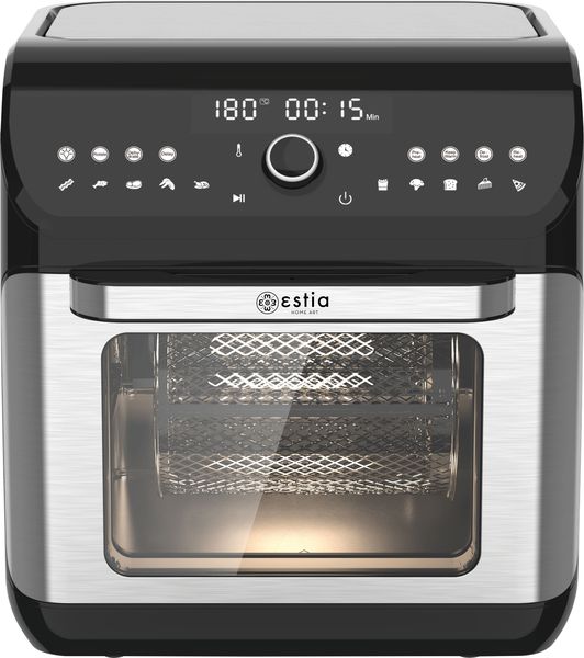 • Τύπος: Φριτέζα αέρος - φουρνάκι. • Ισχύς: 1500W. • Χωρητικότητα: 12L. • 4 λειτουργίες: Φριτέζα αέρος, αποξήρανση, ξεπάγωμα, ψήσιμο. • Εύρος θερμοκρασίας: 80 - 230°C. • Χρονοδιακόπτης έως 60 λεπτά. • Περιλαμβάνει: Δύο διάτρητες σχάρες ψησίματος, Ένα καλάθι τηγανίσματος και μια περιστρεφόμενη σούβλα για μεγάλα κομμάτια κρέατος, δίσκο για ψίχουλα, σχάρα. • Διπλό πυράντοχο γυαλί. • Εσωτερικός φωτισμός. • Αντιολισθητική βάση. • Αντιθερμική λαβή. • Χρώμα: Μαύρο. • Εγγύηση: 2 χρόνια. DOA 7 ημερών