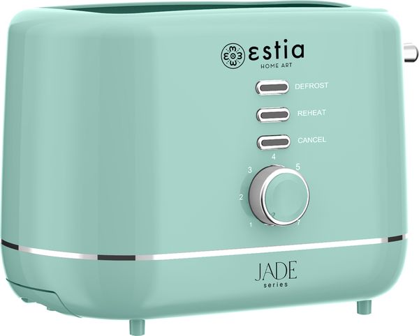 Η φρυγανιέρα ESTIA JADE αποτελεί την ιδανική επιλογή για απολαυστικά φρυγανισμένο ψωμί κάθε στιγμή. Με ισχύ 850W και 7 επίπεδα ψησίματος, σας επιτρέπει να ρυθμίσετε τον βαθμό φρυγανίσματος που επιθυμείτε, προσφέροντας τέλεια αποτελέσματα. Διαθέτει δύο θέσεις για φέτες ψωμιού, λειτουργίες αναθέρμανσης και απόψυξης για ακόμα μεγαλύτερη ευελιξία, καθώς και LED ενδείξεις λειτουργίας για άμεση οπτική ενημέρωση. Η συσκευή διαθέτει αποσπώμενο δίσκο συλλογής ψίχουλων για εύκολο καθαρισμό και ειδικό χώρο αποθήκευσης του καλωδίου, καθιστώντας την εύκολη στη χρήση και πρακτική στην αποθήκευση. Με κομψό σχεδιασμό σε χρώμα γαλαζοπράσινο(του νεφρίτη), η ESTIA JADE προσφέρει υψηλή απόδοση και μοντέρνα αισθητική που ταιριάζει σε κάθε κουζίνα.