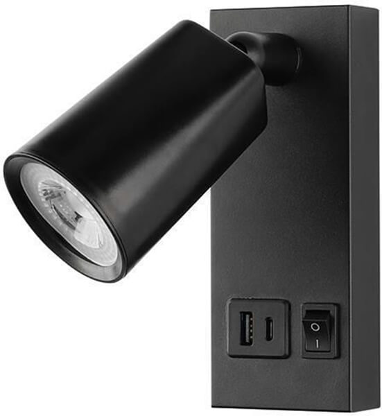 EUROLAMP ΑΠΛΙΚΑ ΚΡΕΒΑΤΙΟΥ ΑΝΑΓΝΩΣΗΣ ΜΑΥΡΗ ΜΕ USB -TYPE C 5W 3000K 150X80X145MM 145-22070 (ANA.EUR0271)