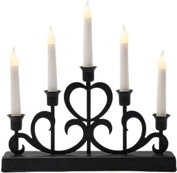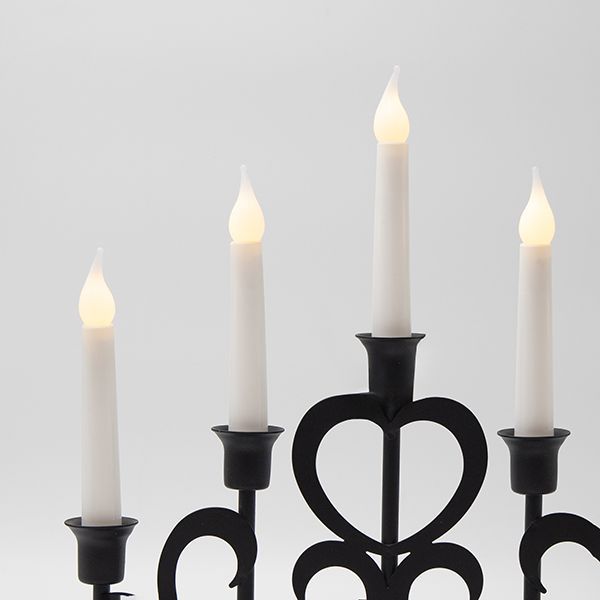 Το μεταλλικό κηροπήγιο Eurolamp σε μαύρο ματ χρώμα συνδυάζει κομψότητα και λειτουργικότητα, προσφέροντας ατμοσφαιρικό φωτισμό με ασφαλή και εύχρηστη LED τεχνολογία. Ιδανικό για τραπέζια, ράφια ή συνθέσεις διακόσμησης, διαθέτει 5 θερμόλευκα LED φώτα και timer, ώστε να απολαμβάνετε τη ζεστή λάμψη χωρίς να χρειάζεται συνεχής επίβλεψη. Η στιβαρή κατασκευή από σίδερο με λεπτομέρειες από PP εξασφαλίζει αντοχή και μακροχρόνια χρήση, ενώ η τροφοδοσία με 2 μπαταρίες AA καθιστά τη χρήση του ανεξάρτητη από πρίζα.