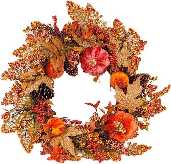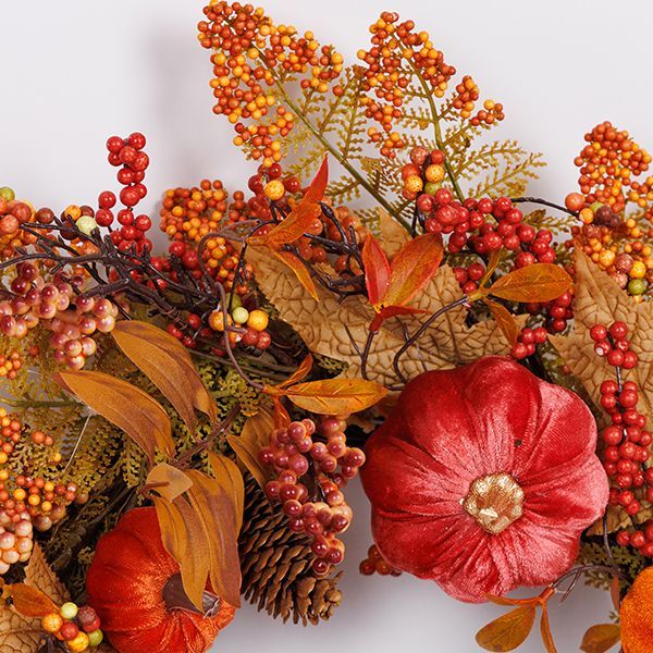 Το στεφάνι Eurolamp με φύλλα σφενδάμου και πορτοκαλί βελούδινες κολοκύθες αποτελεί ένα εντυπωσιακό διακοσμητικό στοιχείο για το φθινόπωρο και το Halloween. Συνδυάζει φυσικές αποχρώσεις πορτοκαλί και κόκκινου, αποπνέοντας θερμότητα και φθινοπωρινή θαλπωρή. Κατασκευασμένο από φελιζόλ, βελούδο και ύφασμα, προσφέρει πλούσια υφή και υψηλή αισθητική, ιδανικό για πόρτες, τοίχους ή τραπέζια διακόσμησης.