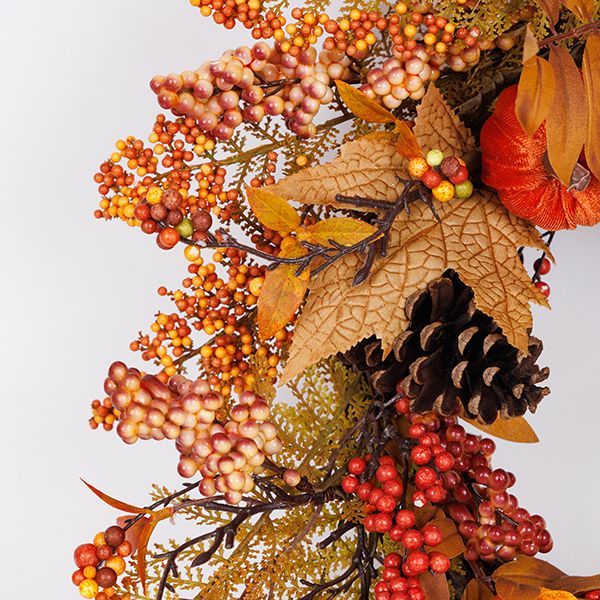 EUROLAMP ΣΤΕΦΑΝΙ ΜΕ ΦΥΛΛΑ ΣΦΕΝΔΑΜΟΥ ΚΑΙ ΠΟΡΤΟΚΑΛΙ ΒΕΛΟΥΔΙΝΕΣ ΚΟΛΟΚΥΘΕΣ 60CM (PER.267546)