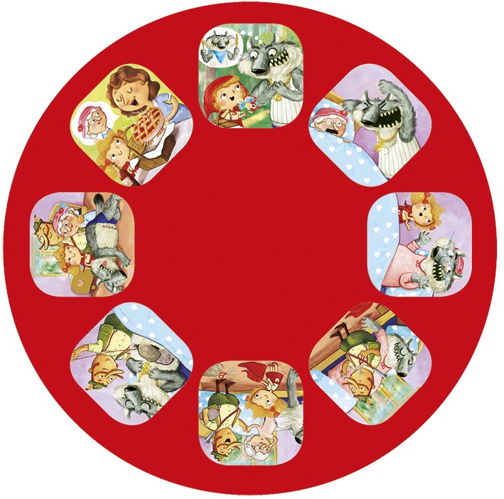 Περιλαμβάνονται τρία παραμύθια σε σλάιτς (Κοκκινοσκουφίτσα, Χάνσελ και Γκρέτελ, Χιονάτη) και κάθε σλάιτ έχει οκτώ εικόνες.