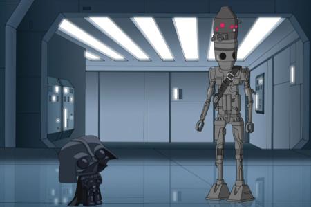 O Skywalker (Κρις) ενώνει τις δυνάμεις του με τον Solo (Πίτερ) και την Princess Lia (Λόις) για να αντιμετωπίσουν τον Vader (Στούι) και τους ακόλουθούς του.