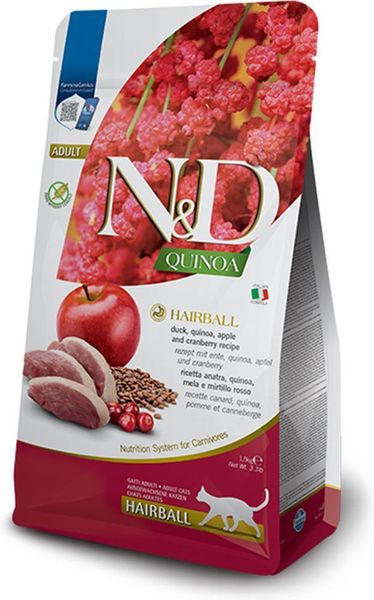FARMINA ND QUINOA HAIRBALL ΞΗΡΑ ΤΡΟΦΗ ΓΑΤΑΣ ADULT ΠΑΠΙΑ/ΚΙΝΟΑ/ΜΗΛΟ/CRANBERRY 1.5KG (PU2.32002179)