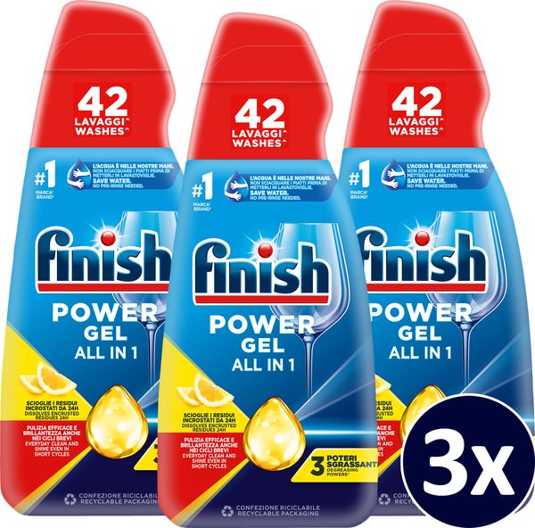 FINISH POWER GEL FRESH ΥΓΡΟ ΠΛΥΝΤΗΡΙΟΥ ΠΙΑΤΩΝ ΜΕ ΑΡΩΜΑ ΛΕΜΟΝΙ 940ML 42 ΜΕΖΟΥΡΕΣ X3