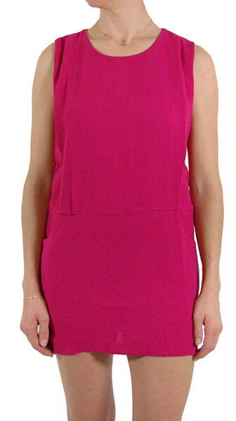 Αμάνικο φόρεμα Angel Eye σε φούξια χρώμα. Πρόκειται για ένα casual, mini μονόχρωμο φόρεμα με ίσια γραμμή. Έχει στρογγυλή λαιμόκοψη και κλείνει στο πίσω μέρος με φερμουάρ. Διαθέτει τσέπες στο μπροστινό μέρος και έχει υφασμάτινη επένδυση εσωτερικά.
