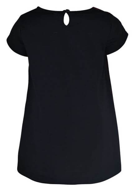 Mε τυπωμένο σχέδιο "τριαντάφυλλα" στο μπροστινό μέρος και καρό σε κόκκινο και μαύρο χρώμα. Διαθέτει μαύρο μονόχρωμη πλάτη.