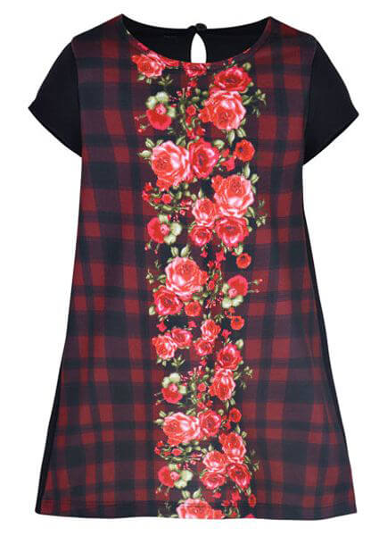 Φόρεμα με λουλούδια και καρό σε κόκκινο - μαύρο χρώμα, από την εταιρία ENERGIERS.