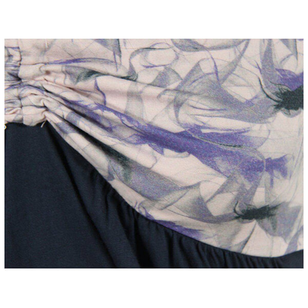 Το σχέδιο που υπάρχει στο στήθος είναι ροζ με μωβ και γκρι λεπτομέρειες. Επίσης υπάρχει κορδόνι που μπορείτε να δέσετε γύρω από τον λαιμό σας και παράλληλα να δημιουργήσετε στην περιοχή αυτή όση σούρα επιθυμείτε ή απλά να τοποθετήσετε το κορδόνια εσωτερικά του φορέματος ώστε να μην φαίνονονται!