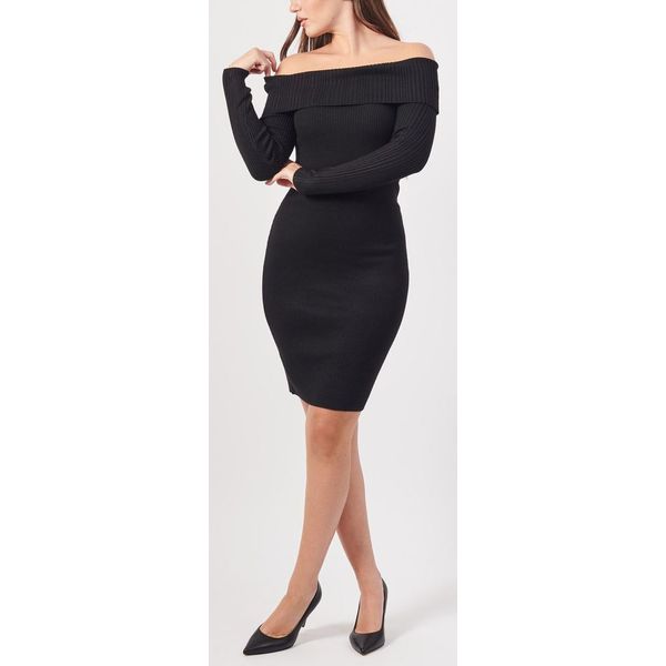 Πρόκειται για ένα πλεκτό, mini μονόχρωμο φόρεμα με στενή εφαρμογή.