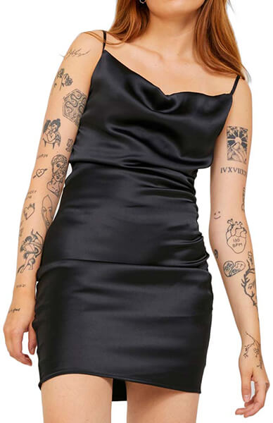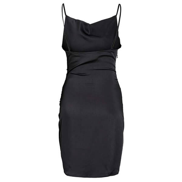 Πρόκειται για ένα mini, μονόχρωμο φόρεμα με στενή εφαρμογή και λεπτά ρυθμιζόμενα ραντάκια.