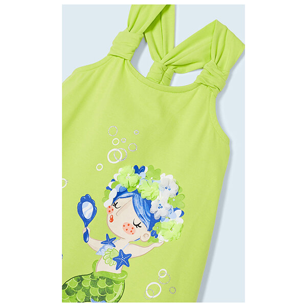 Φόρεμα της εταιρείας Mayoral σε πράσινο χρώμα. Είναι διακοσμημένο στο μπροστινό μέρος με στάμπα εξαιρετικής ποιότητας, όπου απεικονίζονται δύο γοργόνες. Διαθέτει διακοσμητικούς κόμπους στις τιράντες και στην πλάτη. Company info Η Mayoral είναι η ηγετική μάρκα στη παιδική ένδυση στην Ιβηρική χερσόνησο και μια από τις πιο σημαντικές εταιρείες στη παιδική ένδυση στην Ευρώπη. Η ομάδα της Mayoral ασχολείται με τον σχεδιασμό, την παραγωγή ,το marketing και την διανομή της παιδικής μόδας σε πάνω από 100 χώρες μέσω ενός δικτύου πωλήσεων που αποτελείται από 20 θυγατρικές εταιρείες, 250 εμπορικούς αντιπρόσωπους , 245 καταστήματα Mayoral και πάνω από 10.000 σημεία πώλησης ανά τον κόσμο.Είδος>Φόρεμα Σύνθεση>Λοιπά χαρακτηριστικά>Ακολουθήστε τις οδηγίες πλύσης που αναγράφονται στο ειδικό ταμπελάκιΧρώμα>Πράσινο (λάιμ) Τα προϊόντα των κατηγοριών Αθλητικά, Βρεφικά - Παιδικά, Ενδυση Υπόδηση πωλούνται από την εταιρεία Electronic Shopping Greece ΑΕ σε συνεργασία με το site Plus4u.gr. Η υποστήριξη μετά την πώληση και οι εγγυήσεις των προϊόντων αυτών παρέχονται από την ίδια εταιρεία μέσα από το site www.plus4u.gr και το τηλεφωνικό κέντρο 211 2000 700. Μπορείτε να συνδυάσετε τα προϊόντα αυτά με τα υπόλοιπα προϊόντα του e-shop.gr και να τα παραλάβετε μαζί ώστε να μειώσετε τα έξοδα αποστολής. Μπορείτε επίσης να παραλάβετε από οποιοδήποτε eshop point με μηδενικά έξοδα αποστολής ανεξαρτήτως ύψους παραγγελίας!