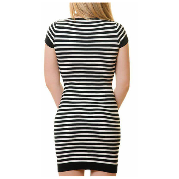 Πλεκτό, ελαστικό φόρεμα"ROCK THE OUTFIT" με ριγέ σχέδιο σε μαύρο και λευκό χρώμα.