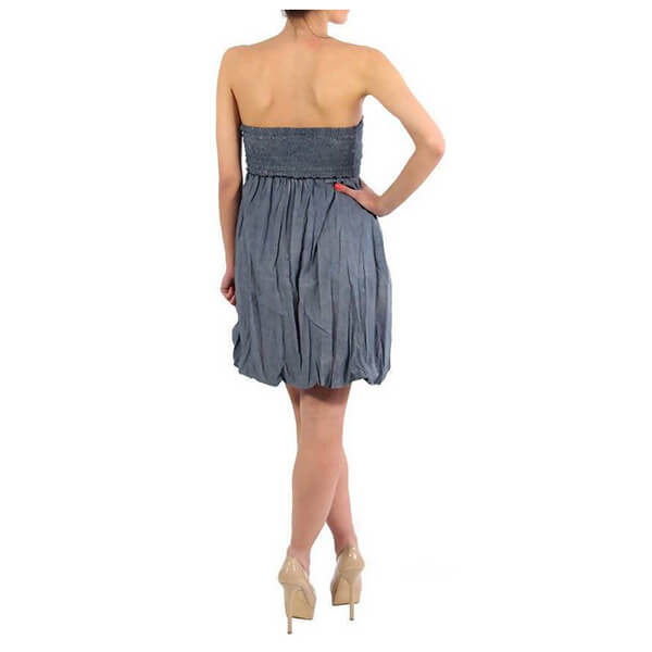 H γραμμή του είναι κανονική και το μάκρος του κοντό. Είναι strapless και στο πίσω μέρος στο ύψος της πλάτης έχει "σφήκα" με ελαστικότητα για να αναδεικνύει το μπούστο σας! Επιπλέον υπάρχει φερμουάρ στα πλάγια για καλύτερη εφαρμογή. Στην μπροστά πλευρά υπάρχει διακοσμητικό με το λογότυπο της εταιρείας και δερμάτινος καφέ φιόγκος που του δίνει ένα μοναδικό στυλ.. Στο τελείωμα του είναι balloon προσδίδοντας του έναν ιδιαίτερα ρομαντικό χαρακτήρα!