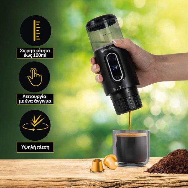 ÌéêñÞ, êïìøÞ êáé åëáöñéÜ, ç HomeVero Portable Espresso Maker óïõ åðéôñÝðåé íá áðïëáìâÜíåéò êáöÝ ìå ôïí äéêü óïõ ôñüðï – êÜèå óôéãìÞ, ðáíôïý.