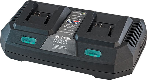 Φορτιστής Διπλής Μπαταρίας της BORMANN PRO. Είναι ιδανικός για εργαλεία υψηλών απαιτήσεων που χρειάζονται περισσότερο χρόνο λειτουργίας.
