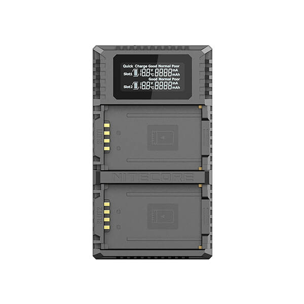 -Διαθέσιμη γρήγορη φόρτιση (QC 2.0) με έξοδο 1200mA. Χαρείτε την ατελείωτη παροχή ενέργειας όταν βρίσκεστε σε κίνηση. -Με ρεύμα φόρτισης που φθάνει τα 1200 mA σε μία θέση φόρτισης χρειάζεται μόλις 4 ώρες για να φορτίσει πλήρως 2 μπαταρίες. Μπορεί να φορτίζει ταυτόχρονα δύο μπαταρίες με ρεύμα 800mA και μία μπαταρία μόνη της με ρεύμα 1200mA. -Είναι συμβατός με πολλούς τύπους πηγών ενέργειας όπως ηλιακά panel, μετασχηματιστές με έξοδο USB . Μπορεί να χρησιμοποιηθεί σε συνεργασία με τον NITECORE F2 που λειτουργεί και ως ευέλικτη αποθήκη ενέργειας (Power Bank). -Είναι ειδικά σχεδιασμένος για τις μπαταρίες των φωτογραφικών μηχανών LEICA. Έχοντας λάβει υπόψη τις ιδιαίτερες συνήθειες των χρηστών φωτογραφικών μηχανών LEICA, δύο μπαταρίες LEICA MR-SCL5 μπορούν να εισαχθούν ταυτόχρονα στον ULM10PRO . Δεν θα υπάρξει πλέον απώλεια καμίας όμορφης στιγμής εξαιτίας έλλειψης ενέργειας. -Το έξυπνο σύστημα διαχείρισης της φόρτισης από USB επιλέγει αυτόματα την μέθοδο φόρτισης. Ο ULM10PRO επωφελείται του έξυπνου συστήματος διαχείρισης της φόρτισης. Παρακολουθεί την κατάσταση της μπαταρίας, εμφανίζει την τάση της μπαταρίας, το ρεύμα φόρτισης και την ποσότητα που έχει φορτίσει και αυτόματα προσαρμόζεται για την βέλτιστη φόρτιση με μία από τις μεθόδους φόρτισης CC και CV. -Η υψηλής ευκρίνειας οθόνη υγρών κρυστάλλων (LCD) παρουσιάζει σε πραγματικό χρόνο τις πληροφορίες της φόρτισης: Υγεία της μπαταρίας, Ρεύμα φόρτισης, Ποσότητα που έχει φορτιστεί, Τάση της μπαταρίας, Επίπεδο ενέργειας της μπαταρίας. -Μόλις εισαχθεί η μπαταρία, ο ULM10PRO θα την φορτίσει με ένα αρχικό ρεύμα και αυτόματα θα ανιχνεύσει την κατάσταση της. Η οθόνη θα παρουσιάσει την υγεία της ως Καλή (Goof), Φυσιολογική (Normal), Αδύναμη (Poor) -Ενεργοποίηση υπερβολικά αποφορτισμένων μπαταριών. Ο ULM10PRO ενεργοποιεί αυτόματα υπερβολικά αποφορτισμένες μπαταρίες εξαιτίας λανθασμένης αποθήκευσης ή κακής χρήσης. -Προστασία ανάποδης πολικότητας και βραχυκυκλώματος. Ο ULM10PRO χρησιμοποιεί ένα μηχανικό σύστημα προστασίας ανάποδης πολικότητας. Εάν εισαχθεί λανθασμένα μία μπαταρία στην θέση φόρτισης ή αν εισαχθεί μία μη-συμβατή μπαταρία , το σύστημα θα αποτρέψει την εκκίνηση της διαδικασίας της φόρτισης. -Κατασκευασμένος από ανθεκτικά και επιβραδυντικά της φωτιάς πολυκαρβονικά υλικά. -Σχεδιασμός με μοναδικά πτερύγια ψύξης. Έχουν σχεδιαστεί ώστε να ενεργοποιούν εξαιρετική απόδοση ψύξης και να διαχέουν την θερμότητα γρήγορα για να αποφευχθεί πιθανή βλάβη. -Συμπεριλαμβάνεται καλώδιο φόρτισης USB 2.0 και στον φορτιστή αυλάκωσης που προστατεύουν από βίαια τραβήγματα.
