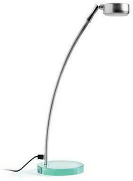 Φωτιστικό γραφείου LED, με άκαμπτο βραχίονα, σε ασημί χρώμα.