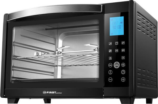 Φουρνάκι της First Austria με ισχύ 2000W και χωρητικότητα 45L. Διαθέτει αντιστάσεις πάνω-κάτω, ψήσιμο με αέρα, λειτουργία σούβλας και συνολικά 8 προγράμματα ψησίματος για μπισκότα, ψωμί, πίτσα, μπριζόλα, κοτόπουλο, κέικ, ξεπάγωμα και διατήρηση θερμοκρασίας. Ο χρήσιμος χρονοδιακόπτης 180 λεπτών με ειδοποίηση, θα σας βοηθήσει να προγραμματίζετε την διάρκεια του ψησίματός σας. Στην οθόνη LCD μπορείτε να βλέπετε ψηφιακές ενδείξεις ενώ ο χειρισμός γίνεται με πάνελ αφής. -Είναι κατασκευασμένος με θερμαντικά στοιχεία από ανοξείδωτο χάλυβα. -Διαθέτει ποδαράκια από αντιολισθητικό υλικό.