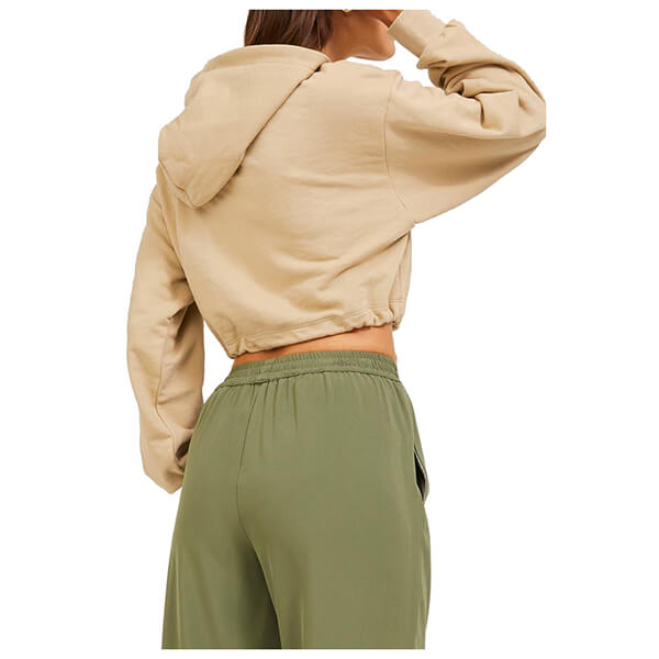 Πρόκειται για ένα μονόχρωμο crop φούτερ με oversize εφαρμογή.