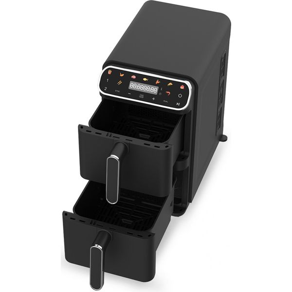 Με συνολική χωρητικότητα 11 λίτρων (2 ? 5.5 L), είναι ιδανική για οικογένειες ή όσους αγαπούν να μαγειρεύουν μεγάλα γεύματα. Χρησιμοποίησε τη λειτουργία SYNC για διαφορετικά φαγητά που τελειώνουν ταυτόχρονα ή τη λειτουργία DUAL για διπλή παραγωγή.