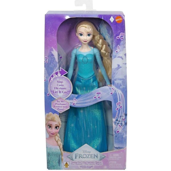 Ζήστε τη μαγεία της μουσικής του Frozen με την κούκλα Έλσα Που Τραγουδάει! Αφήστε την Έλσα να σας μαγέψει με τη φωνή της και την εμβληματική της εμφάνιση. Πατήστε το κουμπί στο στήθος της και ακούστε την Έλσα να τραγουδάει το αγαπημένο σας τραγούδι από την ταινία. Η Έλσα φοράει ένα όμορφα διαμορφωμένο τοπ και μια φούστα από μαλακό ύφασμα.