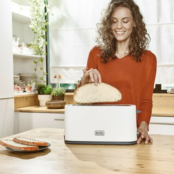 Η φρυγανιέρα BLACK & DECKER είναι ιδανική για ψήσιμο όλων των τύπων ψωμιού, όλων των σχημάτων και μεγεθών, χάρη στη μεγάλη υποδοχή. Έχει λειτουργία διακοπής φρυγανίσματος και σύστημα κεντραρίσματος έτσι ώστε το ψωμί να είναι ψημένο ομοιόμορφα.