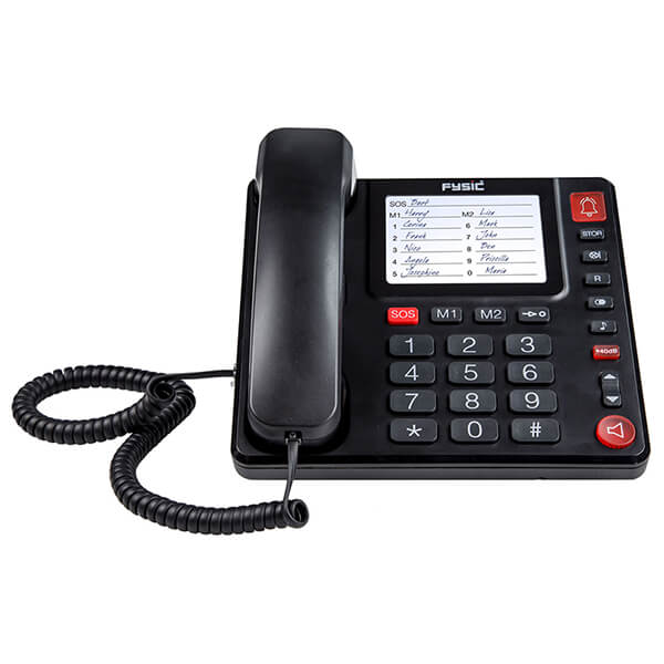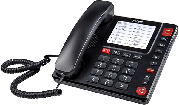 Ενσύρματο τηλέφωνο Fysic. Πρόκειται για ιδανική συσκευή για ηλικιωμένους, αφού διαθέτει δυνατότητα αυξομείωσης της έντασης ήχου, ενώ επιπλέον είναι συμβατό με ακουστικά βαρηκοΐας και διαθέτει δυνατότητα ανοιχτής ακρόασης.