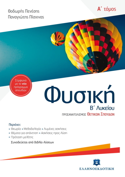 ISBN: 978-960-563-049-2 Συγγραφέας: ΠΕΝΕΣΗΣ ΘΕΟΔΩΡΟΣ, ΠΙΣΧΙΝΑΣ ΠΑΝΑΓΙΩΤΗΣ Εκδοτικός οίκος: ΕΛΛΗΝΟΕΚΔΟΤΙΚΗ Σειρά: ΘΕΤΙΚΩΝ ΣΠΟΥΔΩΝ Σελίδες: 416 Διαστάσεις: 17Χ24 Ημερομηνία Έκδοσης: Σεπτέμβριος 2014 Το βιβλίο αυτό απευθύνεται στους μαθητές της B΄ Τάξης Γενικού Λυκείου οι οποίοι ακολουθούν την ομάδα μαθημάτων Προσανατολισμού Θετικών Σπουδών. Βασική επιδίωξη είναι να προσφέρουμε στους μαθητές /μαθήτριες την κατάλληλη θεωρητική υποστήριξη για τη βαθύτερη κατανόηση της διδακτέας ύλης (σύμφωνα με το νέο αναλυτικό πρόγραμμα σπουδών) του μαθήματος, συμβάλλοντας με τον τρόπο αυτόν ουσιαστικά στην επιτυχία τους στις προαγωγικές εξετάσεις. Με γνώμονα την παραπάνω επιδίωξη σχεδιάστηκε η δομή και οργανώθηκε η ύλη του βιβλίου έτσι, ώστε να αποτελεί εργαλείο για μια ολοκληρωμένη και αποδοτική μελέτη. Ειδικότερα, ο Α΄ τόμος περιλαμβάνει τρία (3) κεφάλαια: Κεφάλαιο 1ο: Καμπυλόγραμμες κινήσεις Κεφάλαιο 2ο: Διατήρηση της ορμής Κεφάλαιο 3ο: Κινητική θεωρία αερίων [+ Κατανομή μοριακών ταχυτήτων: Πείραμα Zartman και Κατανομή κατά Maxwell-Boltzmann] Κάθε κεφάλαιο οργανώνεται σε ενότητες στις οποίες περιέχονται: ΘεωρίαΜεθοδολογία και λυμένες ασκήσειςΘέματα για απάντηση (θέματα πολλαπλής επιλογής, θέματα του τύπου Σωστό-Λάθος, θέματα πολλαπλής επιλογής με αιτιολόγηση) Ασκήσεις προς λύσηΚριτήρια Αξιολόγησης Στο τέλος του βιβλίου υπάρχουν οι απαντήσεις στα θέματα και οι αναλυτικές λύσεις των ασκήσεων του βιβλίου.