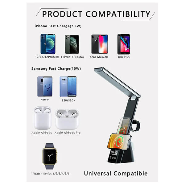 Επιτραπέζια λάμπα ανάγνωσης - Ψηφιακό ξυπνητήρι - Βάση ασύρματου φορτιστή.