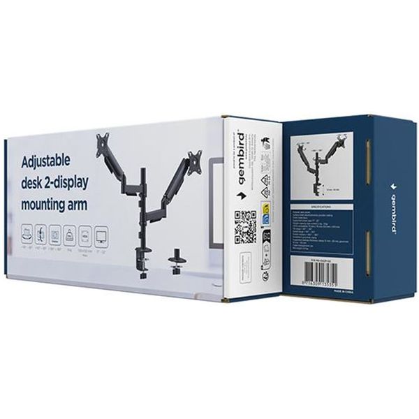 GEMBIRD ADJUSTABLE DESK 2-DISPLAY MOUNTING ARM, 17”-32” BLACK MA-DA2P-02 (PER.272905)