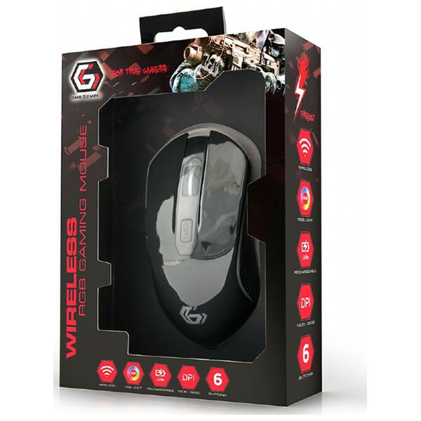 GEMBIRD MUSGW-6BL-01 6-BUTTON RECHARGEABLE WIRELESS RGB GAMING MOUSE FIREBOLT BLACK