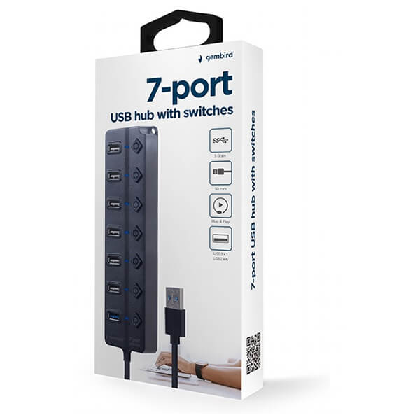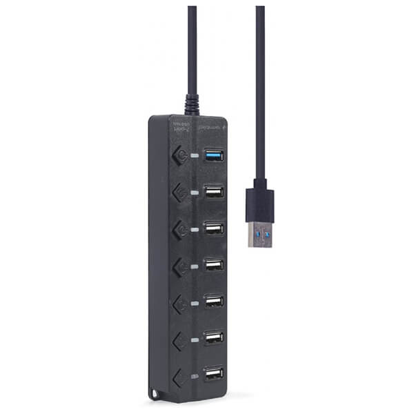 GEMBIRD UHB-U3P1U2P6P-01 7-PORT USB HUB (1 X USB 3.1 + 6 X USB 2.0) WITH SWITCHES BLACK