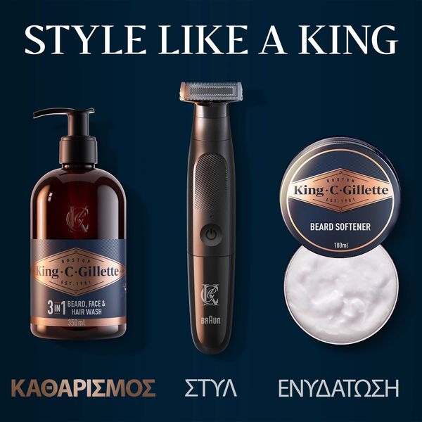 Το Gillette King C Beard & Face Wash είναι ένα εξειδικευμένο προϊόν καθαρισμού για άνδρες που φροντίζουν γένια και επιδερμίδα. Η πλούσια σύνθεσή του με έλαιο argan, έλαιο καρύδας και μενθόλη διεισδύει βαθιά για να αφαιρέσει ρύπους, περίσσεια λιπαρότητα και νεκρά κύτταρα — ενώ ταυτόχρονα ενυδατώνει και καταπραΰνει την επιδερμίδα κάτω από τα γένια. Το αποτέλεσμα είναι καθαρή, δροσερή επιδερμίδα και γένια με πιο υγιή εμφάνιση.