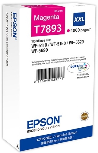 Ειδικά σχεδιασμένο για να επιτρέπει την εκτύπωση υψηλής ποιότητας όλων των εγγράφων σας. Μπορείτε να βασιστείτε στο EPSON T7893XXL για την παροχή επαγγελματικών αποτελεσμάτων κάθε φορά που εκτυπώνετε. Με τις εκπληκτικές εκτυπώσεις από την πρώτη σελίδα μέχρι την τελευταία, αυτή η κασέτα μελανιού είναι ιδανική για χρήση στο σπίτι ή στο γραφείο.
