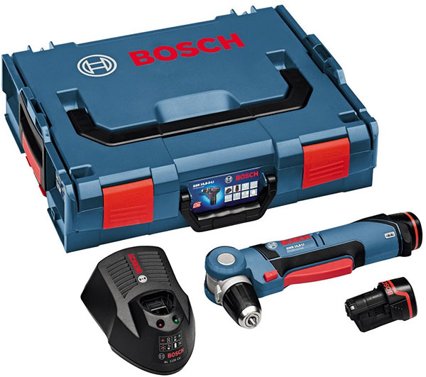 Γωνιακό δραπανοκατσάβιδο μπαταρίας Bosch GWB 12V-10-LI Professional, με 2 μπαταρίες Li-ion 2 Ah και επαγγελματικό βαλιστάκι L-BOXX. Χαρακτηριστικά: - Εξαιρετικά πολύπλευρη δυνατότητα χρήσης χάρη στις 5 ρυθμιζόμενες θέσεις της κεφαλής: 0°/22,5°/45°/67,5°/90°. - Πάρα πολύ συμπαγές: Η μικρότερη (μόνο 11 cm) ρυθμιζόμενη κεφαλή με τσοκ Auto-Lock 10 mm. - Υψηλός αριθμός στροφών 0-1.300 στροφές ανά λεπτό για γρήγορα πρόοδο της εργασίας ιδανικός για τρύπημα. - Φρένο κινητήρα για ακριβείς εργασίες κατά το συνεχές βίδωμα. - Πρακτική ένδειξη της κατάστασης φόρτισης της μπαταρίας με 3 φωτοδιόδους (LED). - Μοναδική τεχνολογία ιόντων λιθίου Premium Bosch για μεγαλύτερη διάρκεια ζωής και αξεπέραστο χρόνο λειτουργίας της μπαταρίας. - Bosch Electronic Cell Protection (ECP): Προστατεύει την μπαταρία από υπερφόρτωση, υπερθέρμανση και πλήρη αποφόρτιση. - Κανένα φαινόμενο μνήμης: Η μπαταρία μπορεί να φορτιστεί οποτεδήποτε ανεξάρτητα από την κατάσταση φόρτισης, χωρίς να υποστούν ζημιά τα στοιχεία της. Μπαταρία: 10,8 V/ 2.0 Ah Li-ion.Ροπή στρέψης (σκληρά/μαλακά): 11 Nm.Ονομαστικές στροφές: 0 1,300 rpm.Ταχυτσόκ: 10 mm.Διάμετρος βιδών, μέγ.: 6 mm.Βάρος: 1.2 Kg.Βίδωμα: 3.5 m/s².Τρύπημα σε μέταλλο: 3.5 m/s².Θόρυβος: 80 db.Εγγύηση: 1 χρόνος.