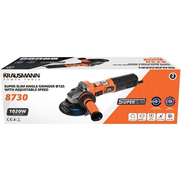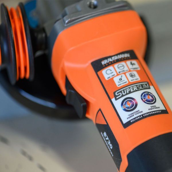 KRAUSMANN στην κατηγορία ΤΡΟΧΟΙ Ο KRAUSMANN 8730 Super Slim γωνιακός τροχός με ρυθμιζόμενη ταχύτητα είναι σχεδιασμένος για απαιτητικές εργασίες κοπής και λείανσης σε μέταλλο και δομικά υλικά. Ο ισχυρός κινητήρας 1020W σε συνδυασμό με τον εργονομικό και εξαιρετικά λεπτό σχεδιασμό του προσφέρει υψηλή απόδοση, ακρίβεια και άνεση στη χρήση, τόσο για επαγγελματίες όσο και για απαιτητικές εργασίες DIY.