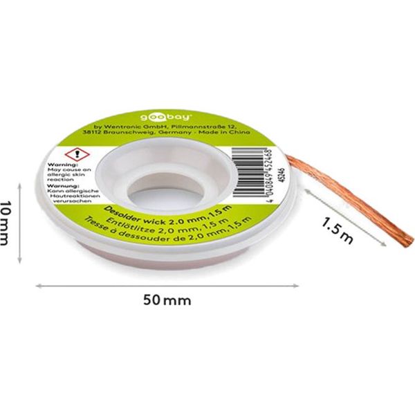 GOOBAY 45246 DESOLDERING WIRE 2MM FOR REMONING SOLDER FROM SOLDER JOINTS, 1.5M