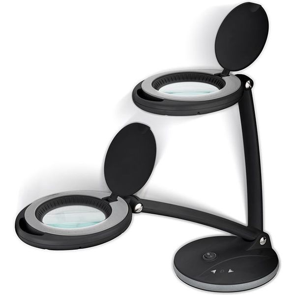 Επιτραπέζιος μεγεθυντικός φακός πάγκου εργασίας με ρυθμιζόμενη ένταση φωτεινότητας LED 450lm, 6W σε μαύρο χρώμα.