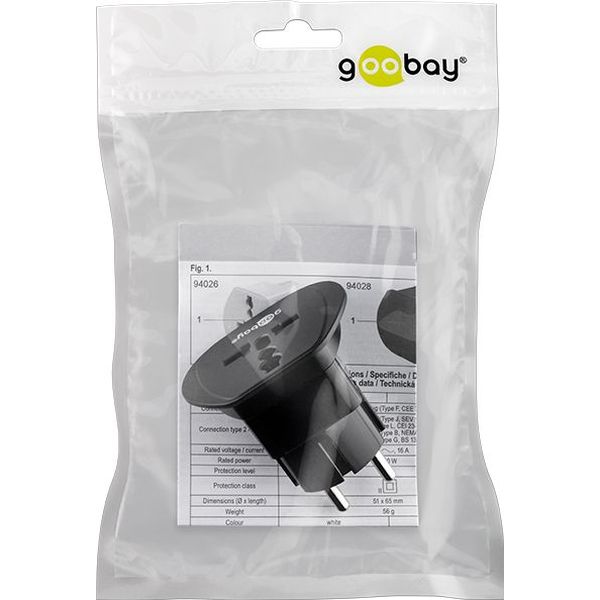 GOOBAY 94028 TRAVEL ADAPTER WORD TO EUROPE BLACK