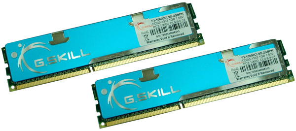 G.SKILL F3-10600CL9D-2GBPK 2GB (2X1GB) DDR3 PC3-10600 1333MHZ DUAL CHANNEL KIT