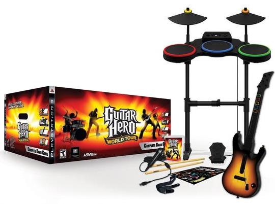 Η επόμενη έκδοση του μουσικού βιντεοπαιχνιδιού με τις καλύτερες πωλήσεις παγκοσμίως για το 2007, το Guitar Hero World Tour θα αλλάξει τα μουσικά βιντεοπαιχνίδια παντρεύοντας τον συγκλονιστικό τρόπο παιξίματος με την κιθάρα, με την εμπειρία συνεργασίας σε συγκρότημα όπου συνδυάζει τα πιο εξελιγμένα ασύρματα μουσικά όργανα με καινούριους, επαναστατικούς online και offline τρόπους παιχνιδιού. Το παιχνίδι παρουσιάζει μία ανασχεδιασμένη, καινούρια κιθάρα, γνήσια ηλεκτρονικά ντραμς και ένα μικρόφωνο, καθώς και έναν καινοτόμο στούντιο μουσικής που επιτρέπει στους παίκτες να δημιουργήσουν, να καταγράψουν, να εκδώσουν και τα Battle of the Bands με συμμετοχή μέχρι και 8 παικτών.