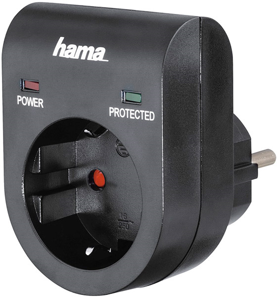 HAMA 108878 OVERVOLTAGE PROTECTION ADAPTER, BLACK