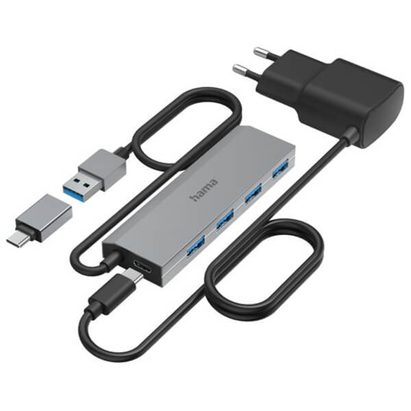 HAMA 200138 HIGH-SPEED 4-PORT USB 3.2 GEN 1 HUB WITH USB-C ADAPTER & POWER SUPPLY UNIT (PER.943713)