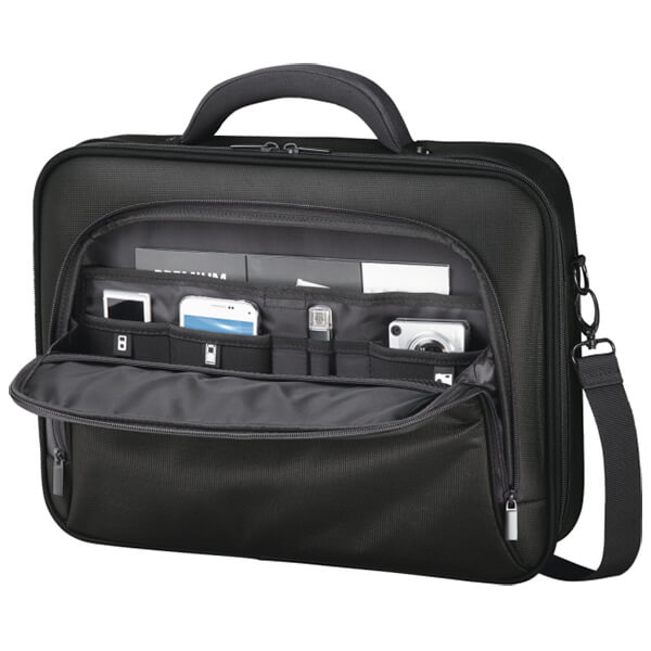 Τσάντα για μεταφορά φορητού υπολογιστή μεγέθους έως 15.6 ίντσες (40 cm) με ρυθμιζόμενο εσωτερικό διαχωριστικό ανάλογα με το μέγεθος του φορητού υπολογιστή. Μεγάλη μπροστινή τσέπη για πρόσθετα αξεσουάρ ή προσωπικά αντικείμενα και εσωτερική τσέπη εγγράφων.