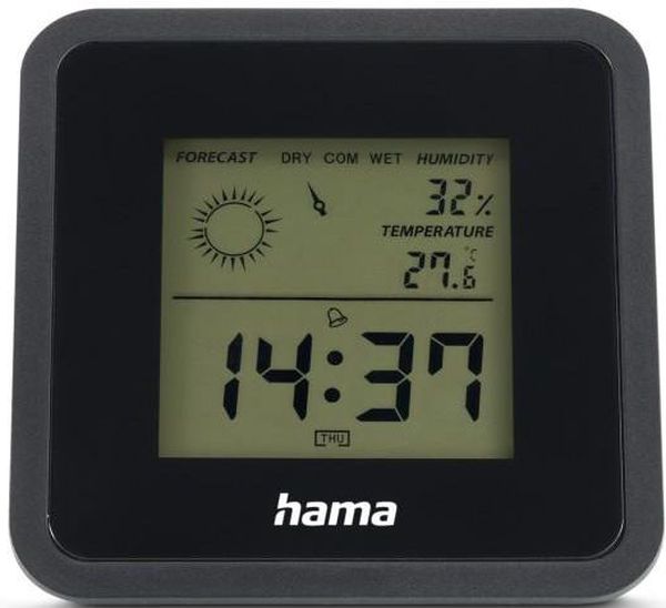 HAMA "BORNEO" THERMOMETER AND HYGROMETER, DIGITAL, FOR INDOORS, BLACK (PER.273328)