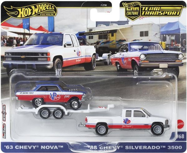 HOT WHEELS: PREMIUM CAR CULTURE TEAM TRANSPORT - '63 CHEVY NOVA '88 CHEVY SILVERADO 3500 VP RACING (EPI.24862)