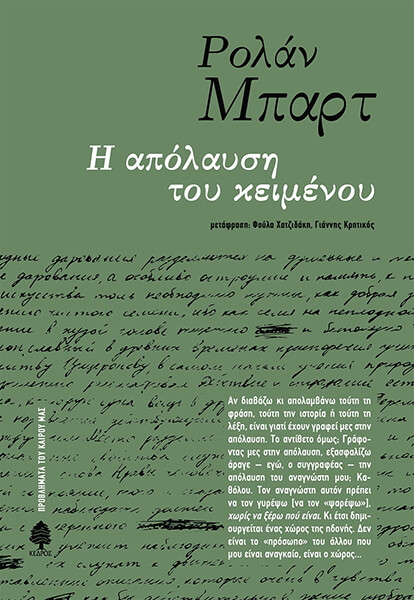 ISBN: 978-960-04-5238-9 Συγγραφέας: BARTHES ROLAND Εκδοτικός οίκος: ΚΕΔΡΟΣ Μετάφραση: ΧΑΤΖΙΔΑΚΗ ΦΟΥΛΑ, ΚΡΗΤΙΚΟΣ ΓΙΑΝΝΗΣ Σελίδες: 112 Διαστάσεις: 14Χ20,6 Ημερομηνία Έκδοσης: Φεβρουάριος 2022 Τι ξέρουμε για το κείμενο; Τον τελευταίο καιρό, η θεωρία επιχειρεί να δώσει κάποια απάντηση. Μένει όμως ένα ερώτημα: Τι απολαμβάνουμε από το κείμενο; Το ερώτημα τούτο οφείλουμε να το θέσουμε έστω και μόνο για ένα λόγο τακτικής: οφείλουμε να καταξιώσουμε την απόλαυση του κειμένου ενάντια στην αδιαφορία της επιστήμης και στον πουριτανισμό της ιδεολογικής ανάλυσης? οφείλουμε να καταξιώσουμε την απόλαυση του κειμένου ενάντια στην ταπείνωση της λογοτεχνίας σαν απλής ψυχαγωγίας. Πώς να θέσουμε το ερώτημα; Συμβαίνει το χαρακτηριστικό της απόλαυσης να είναι πως δεν μπορεί να ειπωθεί. Χρειάστηκε λοιπόν να προσφύγουμε σε μια άτακτη σειρά αποσπασμάτων: στιλπνές πλευρές, πινελιές, κουκκίδες - φυλακτήρια ενός αόρατου σχεδιάσματος: απλή σκηνοθεσία της ερώτησης, βλαστός εξωεπιστημονικός της κειμενικής ανάλυσης. Ρολάν Μπαρτ Αν διαβάζω κι απολαμβάνω τούτη τη φράση, τούτη την ιστορία ή τούτη τη λέξη, είναι γιατί έχουν γραφεί μες στην απόλαυση. Το αντίθετο όμως; Γράφοντας μες στην απόλαυση, εξασφαλίζω άραγε - εγώ, ο συγγραφέας - την απόλαυση του αναγνώστη μου; Καθόλου. Τον αναγνώστη αυτόν πρέπει να τον γυρέψω (να τον «ψαρέψω»), χωρίς να ξέρω πού είναι. Κι έτσι δημιουργείται ένας χώρος της ηδονής. Δεν είναι το «πρόσωπο» του άλλου που μου είναι αναγκαίο, είναι ο χώρος... Ρολάν Μπαρτ